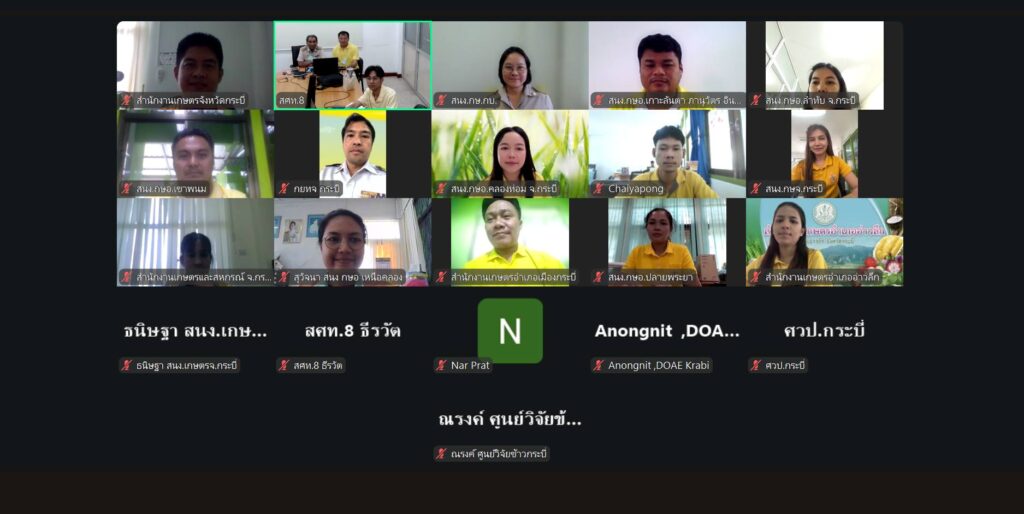 วันที่ 4 และ 18 – 22 สิงหาคม 2568 สำนักงานเศรษฐกิจการเกษตรที่ 8 จัดประชุมหารือพิจารณาข้อมูล ปาล์มน้ำมัน ยางพารา มะพร้าว สับปะรดพันธุ์ปัตตาเวีย ปี 2567 ข้าวนาปี ปีเพาะปลูก 2567/68 กาแฟ ปี 2568 จังหวัดกระบี่ ชุมพร นครศรีธรรมราช และสุราษฎร์ธานี ผ่านระบบการประชุมทางไกลด้วยโปรแกรม Zoom Cloud Meetings เพื่อนำผลการพิจารณาข้อมูลเสนอต่อคณะทำงานพัฒนาคุณภาพข้อมูลภาคใต้ ต่อไป