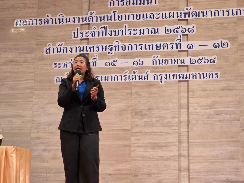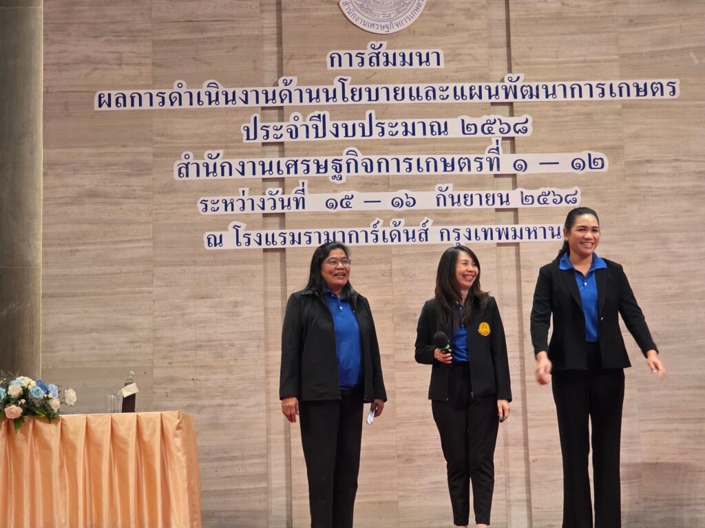 วันที่ 15-16 กันยายน 2568 นายนิกร แสงเกตุ ผู้อำนวยการสำนักงานเศรษฐกิจการเกษตรที่ 8 พร้อมด้วย นางวิรัชนก กลิ่นสัมผัส ผู้อำนวยการส่วนแผนพัฒนาเขตเศรษฐกิจการเกษตร (สผศ.) และเจ้าหน้าที่ สผศ. สศท.8 เข้าร่วมสัมมนาผลการดำเนินงานด้านนโยบายและแผนพัฒนาการเกษตร ปี 2568 ของสำนักงานเศรษฐกิจการเกษตรที่ 1-12 สำนักงานเศรษฐกิจการเกษตร ณ โรงแรมรามาการ์เด้นท์ กรุงเทพมหานคร โดยได้รับเกียรติจาก นายฉันทานนท์ วรรณเขจร เลขาธิการสำนักงานเศรษฐกิจการเกษตร เป็นประธานเปิดการสัมมนา และมี นางธัญธิตา บุญญมณีกุล รองเลขาธิการสำนักงานเศรษฐกิจการเกษตร กล่าวรายงาน
