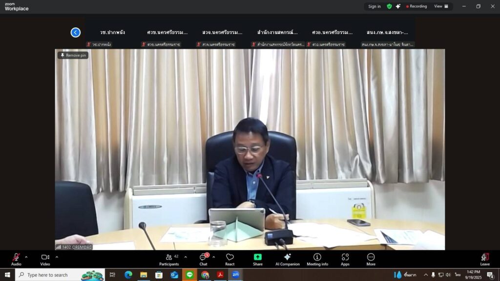 นายนิกร แสงเกตุ ผู้อำนวยการสำนักงานเศรษฐกิจการเกษตรที่ 8 มอบหมายให้ นายบรรจบ ซุ้นสุวรรณ ผู้อำนวยการส่วนวิจัยและประเมินผล เข้าร่วมประชุมคณะทำงานพัฒนาอาชีพตามแผนพัฒนาพื้นที่ลุ่มน้ำปากพนังอันเนื่องมาจากพระราชดำริ พ.ศ. 2565 – 2570 ประจำปีงบประมาณ พ.ศ. 2568 ครั้งที่ 2/2568 โดยมี นายวุฒิพงศ์ เนียมหอม ผู้ตรวจราชการกระทรวงเกษตรและสหกรณ์ เขต 5 เป็นประธาน โดยมีประเด็นสำคัญ คือ