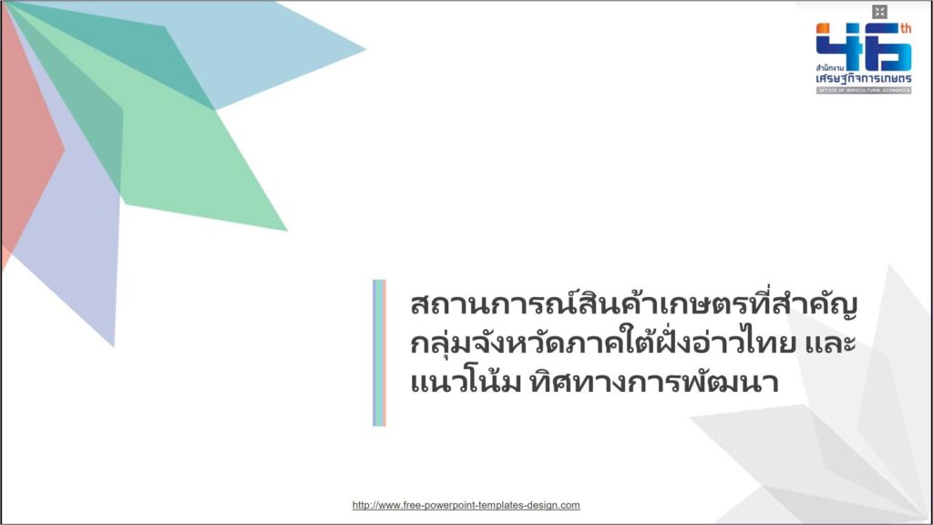 – สถานการณ์สินค้าเกษตรที่สำคัญ กลุ่มจังหวัดภาคใต้ฝั่งอ่าวไทย และแนวโน้ม ทิศทางการพัฒนา