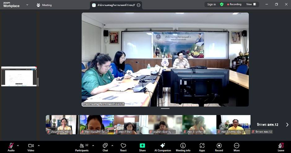 วันที่ 25 กันยายน 2568 นายบรรจบ ซุ้นสุวรรณ ผู้อำนวยการส่วนวิจัยและประเมินผล สำนักงานเศรษฐกิจการเกษตรที่ 8 (สศท.8) พร้อมด้วยนักวิชาการส่วนวิจัยและประเมินผล เข้าร่วมประชุมคณะอนุกรรมการพัฒนางานด้านวิจัยเศรษฐกิจการเกษตรและติดตามประเมินผล ครั้งที่ 4/2568 เพื่อพิจารณา ผลการศึกษางานวิจัยเชิงบูรณาการ ประจำปีงบประมาณ พ.ศ. 2568 เรื่อง การศึกษาต้นทุนส่วนเพิ่มการลดก๊าซเรือนกระจก