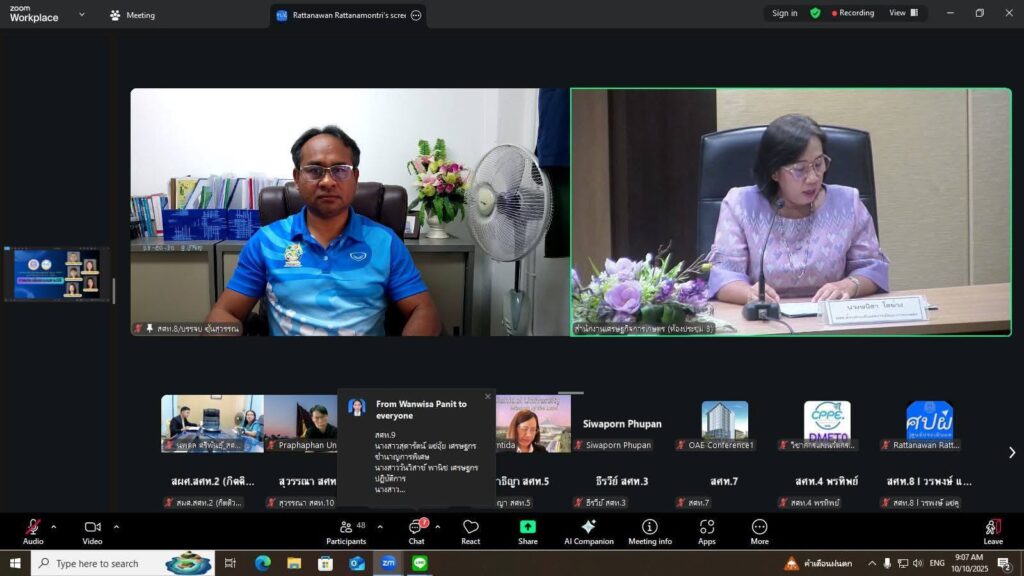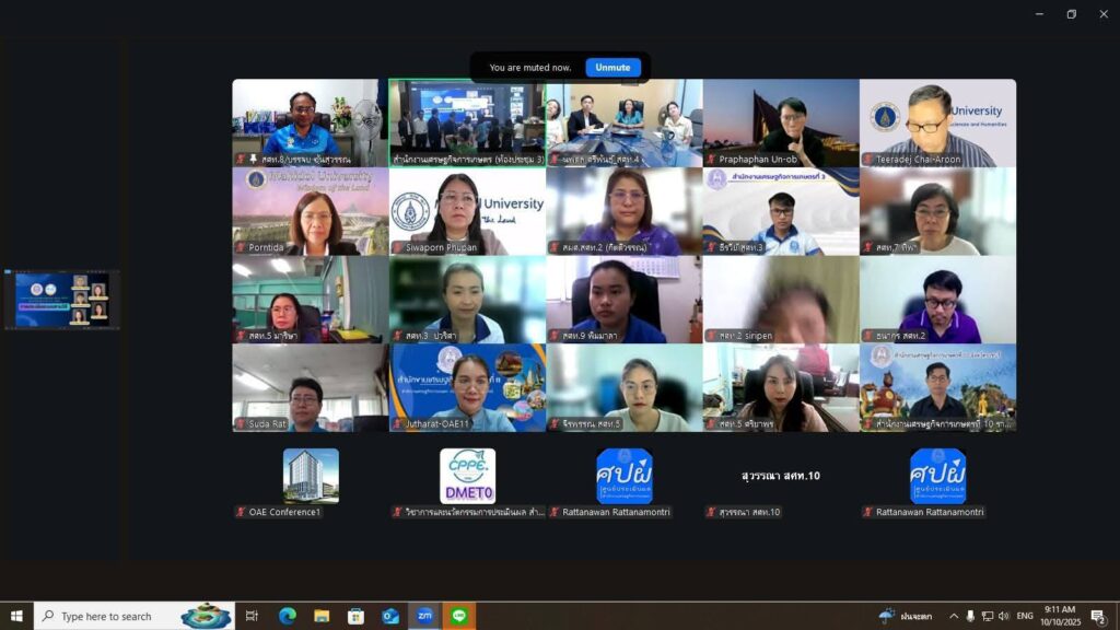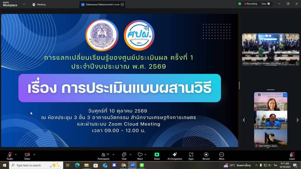 วันศุกร์ที่ 10 ตุลาคม 2568 เวลา 09.00 – 12.00 น. นายนิกร แสงเกตุ ผู้อำนวยการสำนักงานเศรษฐกิจการเกษตรที่ 8 มอบหมายให้ ส่วนวิจัยและประเมินผล นายบรรจบ ซุ้นสุวรรณ ผู้อำนวยการส่วนวิจัยและประเมินผล และคณะเจ้าหน้าที่ เข้าร่วมการแลกเปลี่ยนเรียนรู้ของศูนย์ประเมินผล ครั้งที่ 1 ประจำปีงบประมาณ พ.ศ. 2569 เรื่อง การประเมินแบบผสานวิธี ผ่านระบบ Zoom Cloud Meeting