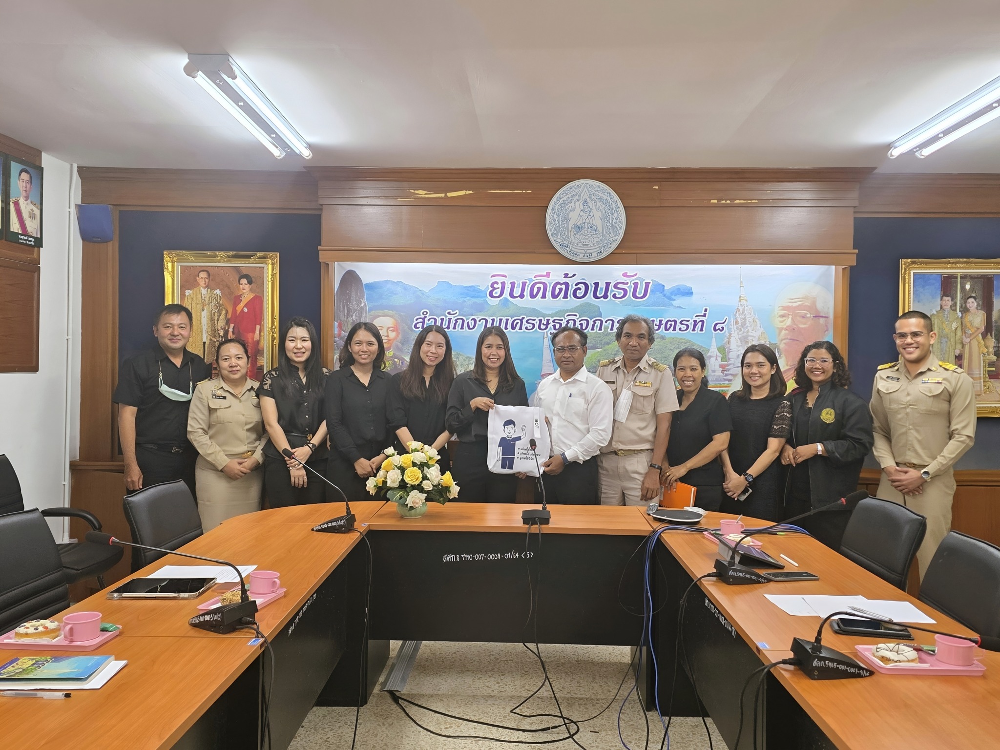 วันที่ 27 ตุลาคม 2568 นายนิกร แสงเกตุ ผู้อำนวยการสำนักงานเศรษฐกิจการเกษตรที่ 8 มอบหมายให้นายบรรจบ ซุ้นสุวรรณ ผู้อำนวยการส่วนวิจัยและประเมินผล พร้อมด้วยทีมงานสำนักงานเศรษฐกิจการเกษตรที่ 8 ร่วมแลกเปลี่ยนข้อคิดเห็นทิศทางแนวโน้มสินค้าเกษตรปี 2569 กับ ธนาคารแห่งประเทศไทย สำนักงานภาคใต้ สำหรับใช้ในการวิเคราะห์และจัดทำภาวะเศรษฐกิจภาคใต้ต่อไป