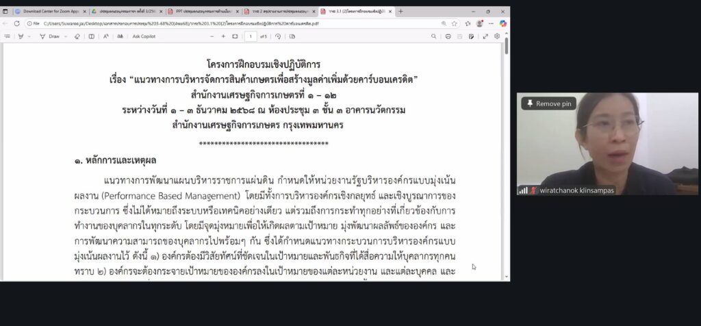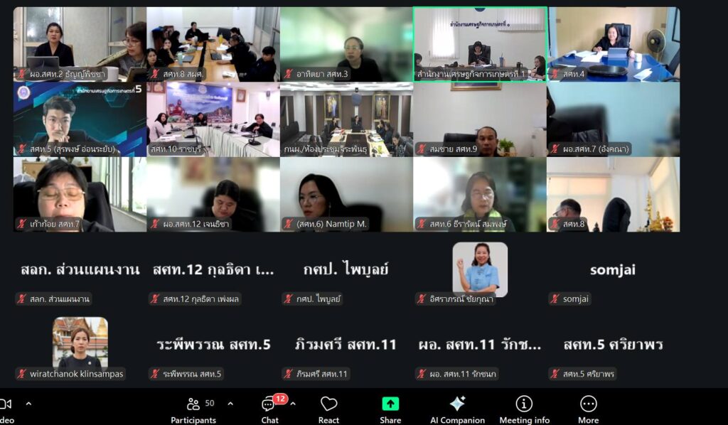 วันอังคารที่ 4 พฤศจิกายน 2568 เวลา 09.30 น. นายนิกร แสงเกตุ ผู้อำนวยการสำนักงานเศรษฐกิจการเกษตรที่ 8 พร้อมด้วยเจ้าหน้าที่ส่วนนโยบายและแผนพัฒนาเขตเศรษฐกิจการเกษตร เข้าร่วมประชุมคณะอนุกรรมการด้านนโยบายและแผนพัฒนาการเกษตร ครั้งที่ 3/2568 ผ่านระบบออนไลน์ Zoom Cloud Meeting ณ ที่ตั้งสำนักงานเศรษฐกิจการเกษตรที่ 8 (สศท.8 จ. สุราษฎร์ธานี โดยมี นางสุจารีย์ พิชา ผู้อำนวยการสำนักงานเศรษฐกิจการเกษตรที่ 1 และประธานคณะอนุกรรมการด้านนโยบายและแผนพัฒนาการเกษตร เป็นประธานการประชุม โดยมีประเด็นสำคัญ ดังนี้