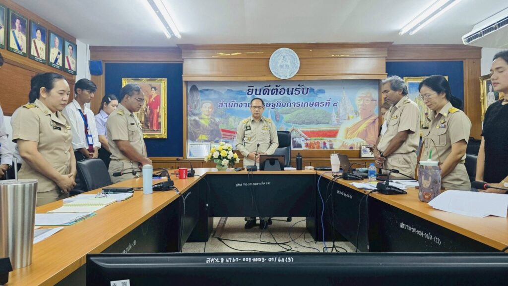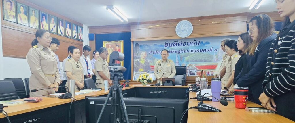 วันจันทร์ที่ 17 พฤศจิกายน พ.ศ. 2568 นายนิกร แสงเกตุ ผู้อำนวยการสำนักงานเศรษฐกิจการเกษตรที่ 8 เป็นประธานการประชุมเจ้าหน้าที่สำนักงานเศรษฐกิจการเกษตรที่ 8 ครั้งที่ 11/2568 ประจำเดือนพฤศจิกายน 2568 โดยมีผู้อำนวยการส่วน/หัวหน้าฝ่าย พร้อมทั้งเจ้าหน้าที่สำนักงานเศรษฐกิจการเกษตรที่ 8 เข้าร่วมประชุมอย่างพร้อมเพรียง ณ ห้องประชุมสำนักงานเศรษฐกิจการเกษตรที่ 8 จังหวัดสุราษฎร์ธานี