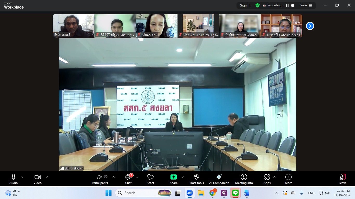 วันที่ 19 พฤศจิกายน 2568 นายนิกร แสงเกตุ ผู้อำนวยการสำนักงานเศรษฐกิจการเกษตรที่ 8 มอบหมายให้ นายธีรวัต มณีวัต ผู้อำนวยการส่วนสารสนเทศการเกษตร พร้อมด้วย นางวรัญญา สุวรรณภักดี นักวิเคราะห์นโยบายและแผนชำนาญการพิเศษ เข้าร่วมประชุมเชิงปฏิบัติการสรุปผลบริหารจัดการผลไม้ภาคใต้ ปี 2568 ผ่านระบบ Zoom Meeting โดยมี นางสุนิภา คีรีนาถ ผู้อำนวยการกลุ่มส่งเสริมและพัฒนาการผลิต สำนักงานส่งเสริมและพัฒนาการเกษตรที่ 5 จังหวัดสงขลา เป็นประธานการประชุม