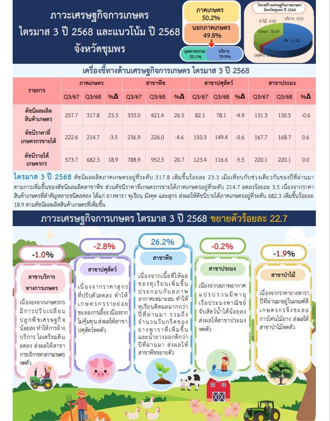– รายงานภาวะเศรษฐกิจการเกษตร ไตรมาส 3 ปี 2568 และแนวโน้มปี 2568 จังหวัดชุมพร