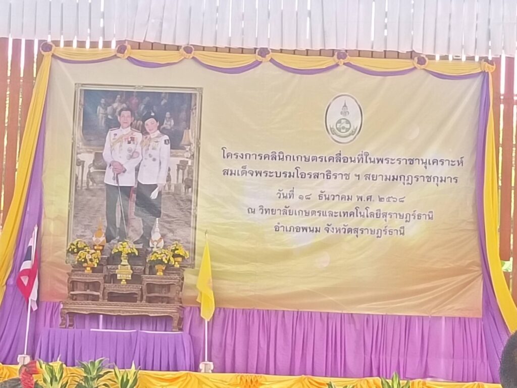 วันที่ 18 ธันวาคม 2568 นายนิกร แสงเกตุ ผู้อำนวยการสำนักงานเศรษฐกิจการเกษตรที่ 8 มอบหมายให้ นายบรรจบ ซุ้นสุวรรณ ผู้อำนวยการส่วนวิจัยและประเมินผล ร่วมกิจกรรมโครงการคลินิกเกษตรเคลื่อนที่ในพระราชานุเคราะห์ สมเด็จพระบรมโอรสาธิราชฯ สยามมกุฎราชกุมาร ไตรมาสที่ 1 ประจำปีงบประมาณ พ.ศ. 2569 ณ วิทยาลัยเกษตรและเทคโนโลยีสุราษฎร์ธานี อำเภอพนม จังหวัดสุราษฎร์ธานี โดยมี นายนเรศ ธำรงค์ทิพยคุณ รัฐมนตรีช่วยว่าการกระทรวงเกษตรและสหกรณ์ เป็นประธานในพิธี