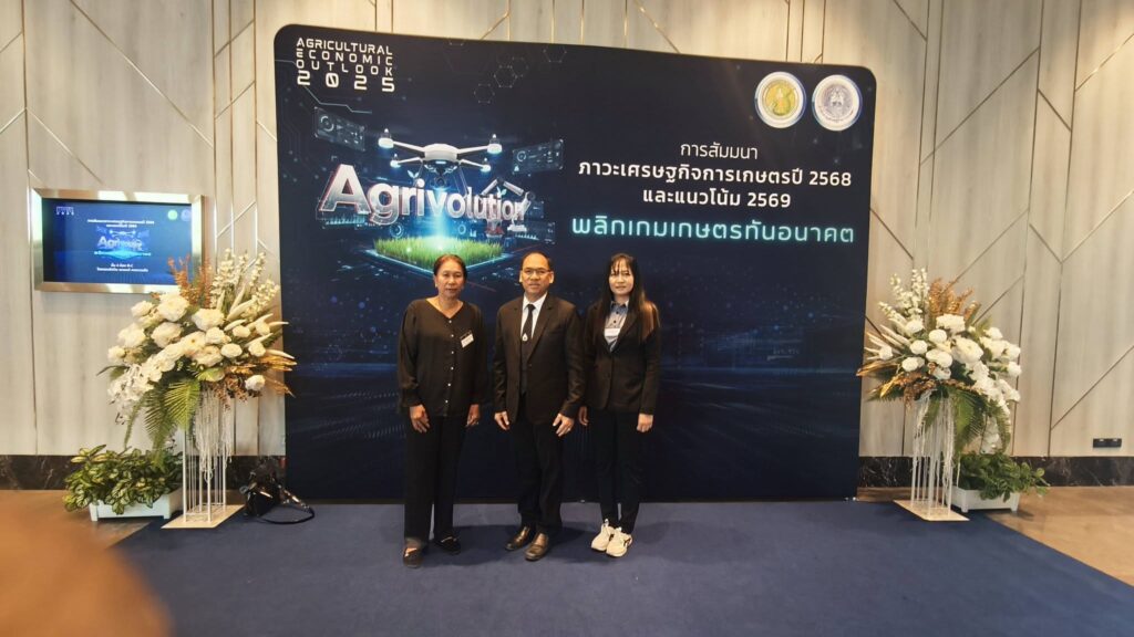 วันที่ 18 ธันวาคม 2568 นายนิกร แสงเกตุ ผู้อำนวยการสำนักงานเศรษฐกิจการเกษตรที่ 8 พร้อมด้วยนางสาวจิรฐา คำรูญ นักวิเคราะห์นโยบายและแผนชำนาญการ และเศรษฐกิจการเกษตรอาสา (ศกอ) จังหวัดนครศรีธรรมราช นางอาภรณ์ ศิริรัตน์ ศกอ. อ.ทุ่งสง นางจิราภรณ์ หนูดุก ศกอ. อ.หัวไทร เข้าร่วมการสัมมนาภาวะเศรษฐกิจการเกษตรปี 2568 และแนวโน้มปี 2569 ภายใต้หัวข้อ “Agrivolution : พลิกเกมเกษตรทันอนาคต ณ ห้องอัศวิน แกรนด์ บอลลูน โรงแรมอัศวิน แกรนด์ คอนเวนชั่น โดยมีนายพีรพันธ์ คอทอง รักษาราชการแทนเลขาธิการสำนักงานเศรษฐกิจการเกษตร (สศก.) เป็นประธานเปิดในการสัมมนา