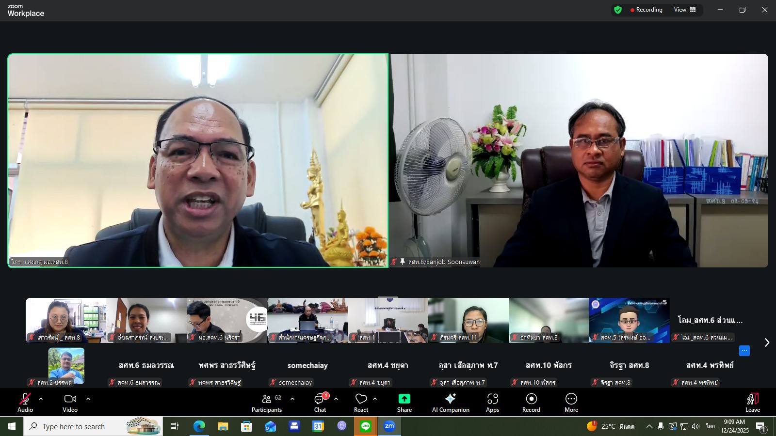 ในวันที่ 26 ธันวาคม 2568 นายนิกร แสงเกตุ ผู้อำนวยการสำนักงานเศรษฐกิจการเกษตรที่ 8 มอบหมายให้ นางวิรัชนก กลิ่นสัมผัส ผู้อำนวยการส่วนแผนพัฒนาเขตเศรษฐกิจการเกษตร เข้าร่วมประชุมคณะกรรมการจังหวัด หัวหน้าส่วนราชการประจำจังหวัดสุราษฎร์ธานี ประจำเดือนธันวาคม 2568 ณ ห้องประชุมเมืองคนดี ชั้น 5 ศาลากลางจังหวัดสุราษฎร์ธานี โดยมี นายจุมพฏ วรรณฉัตรสิริ ผู้ว่าราชการจังหวัดสุราษฎร์ธานีเป็นประธาน และมีหัวหน้าส่วนราชการฯจังหวัดสุราษฎร์ธานี เข้าร่วมประชุมอย่างพร้อมเพรียงกัน