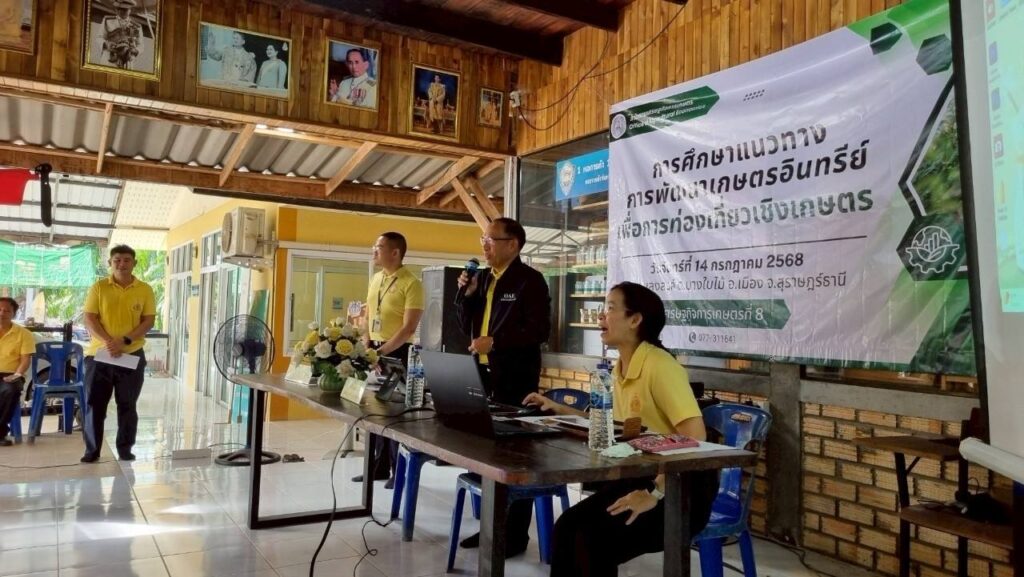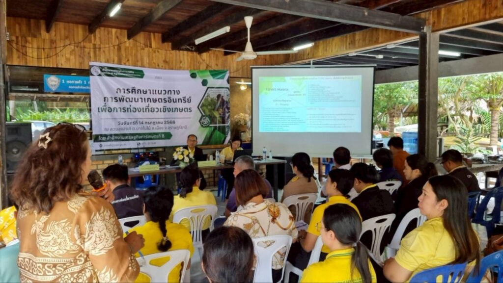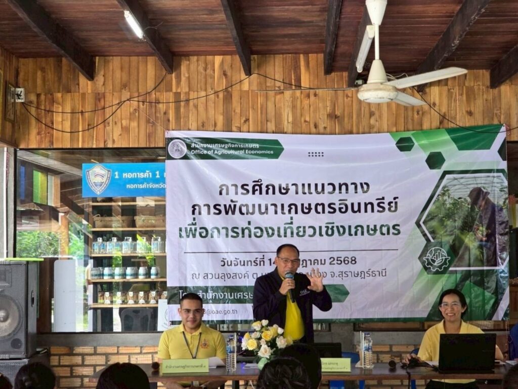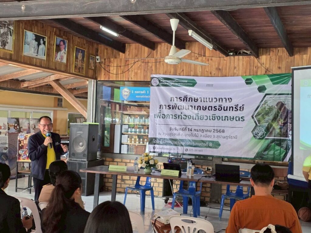 วันที่ 14 กรกฎาคม 2568 สำนักงานเศรษฐกิจการเกษตรที่ 8 โดยส่วนแผนพัฒนาเขตเศรษฐกิจการเกษตร จัดประชุมระดมความคิดเห็น (Focus Group) เรื่อง การศึกษาแนวทางการพัฒนาเกษตรอินทรีย์เพื่อการท่องเที่ยวเชิงเกษตร ณ สวนลุงสงค์ หมู่ที่ 3 บ้านบางใบไม้ ตำบลบางใบไม้ อำเภอเมือง จังหวัดสุราษฎร์ธานี โดยมี นายนิกร แสงเกตุ ผู้อำนวยการสำนักงานเศรษฐกิจการเกษตรที่ 8 เป็นประธานในการประชุม