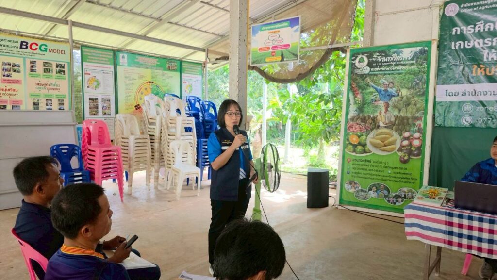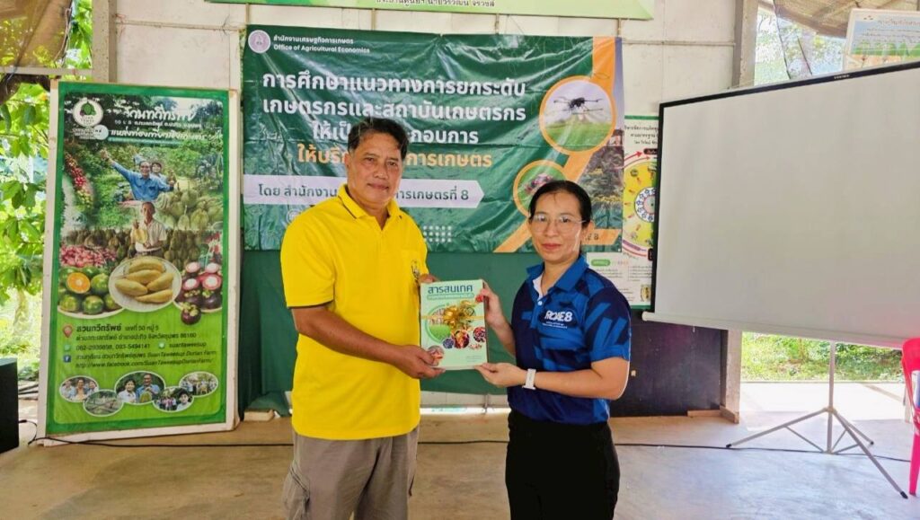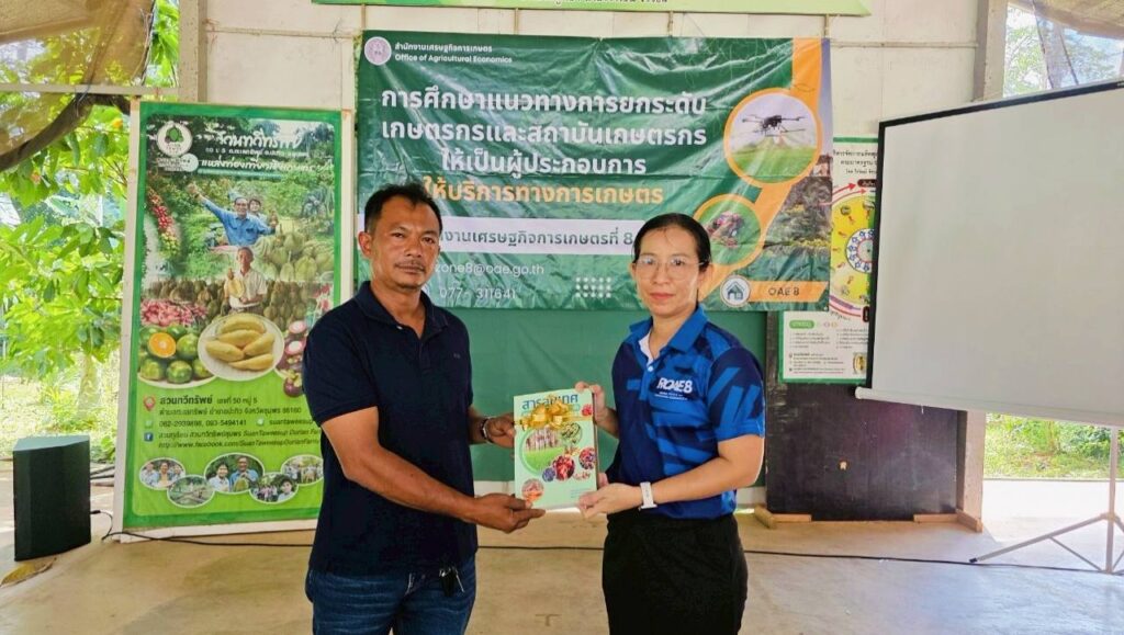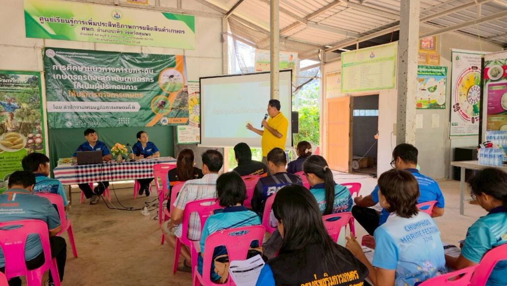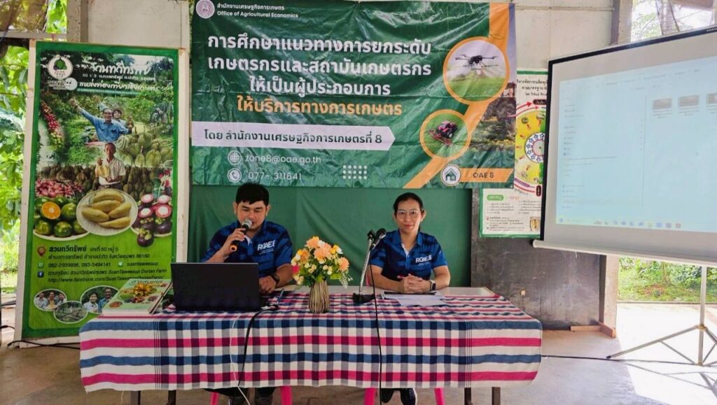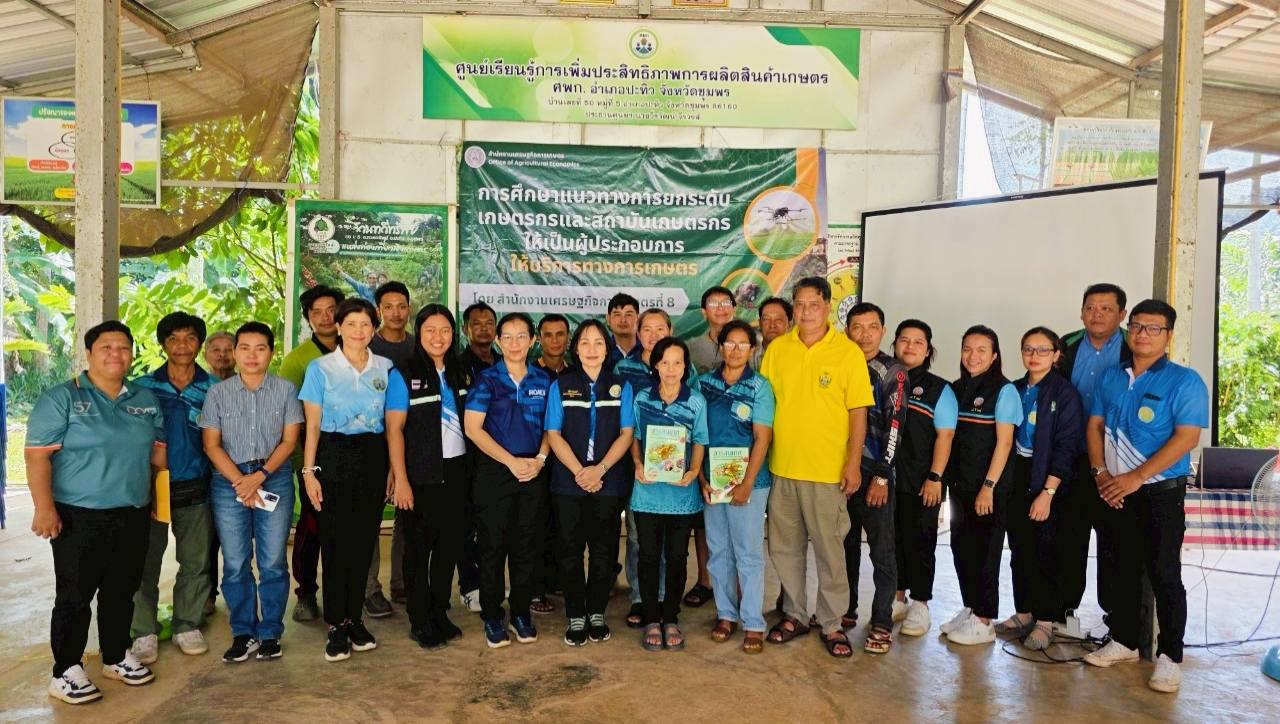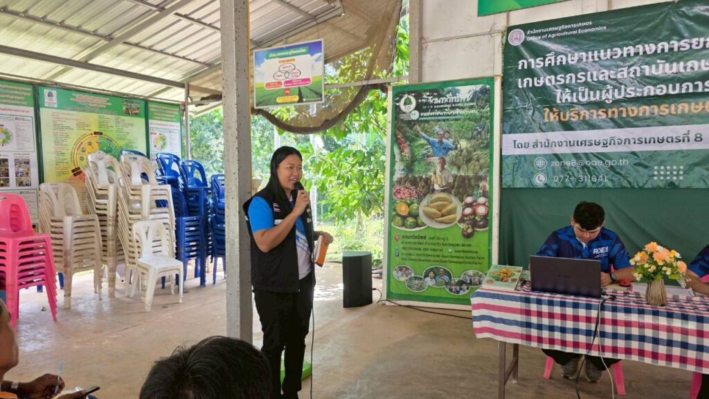 วันที่ 25 กรกฎาคม 2568 สำนักงานเศรษฐกิจการเกษตรที่ 8 โดยส่วนแผนพัฒนาเขตเศรษฐกิจการเกษตร จัดประชุมระดมความคิดเห็น (Focus Group) เรื่อง การศึกษาแนวทางการยกระดับเกษตรกร สถาบันเกษตรกรให้เป็นผู้ประกอบการให้บริการทางการเกษตร ณ อาคารศูนย์เรียนรู้การเพิ่มประสิทธิภาพการผลิตสินค้าเกษตร (ศพก.) อำเภอปะทิว จังหวัดชุมพร โดย นายนิกร แสงเกตุ ผู้อำนวยการสำนักงานเศรษฐกิจการเกษตรที่ 8 มอบหมายให้ นางวิรัชนก กลิ่นสัมผัส ผู้อำนวยการส่วนแผนพัฒนาเขตเศรษฐกิจการเกษตร สำนักงานเศรษฐกิจการเกษตรที่ 8 เป็นประธานในการประชุม