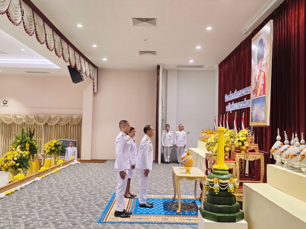 โดยมีนายธีรุตม์ ศุภวิบูลย์ผล ผู้ว่าราชการจังหวัดสุราษฎร์ธานี เป็นประธานในพิธี ตลอดจนหัวหน้าส่วนราชการ รัฐวิสาหกิจ ข้าราชการทหาร ตำรวจ นายกเหล่ากาชาดจังหวัด และจิตอาสาพระราชทาน จำนวน 119 หน่วยงาน ร่วมถวายราชสักการะ
